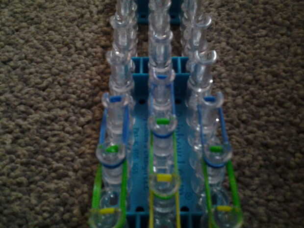 espero que todos disfruten mi primer instructables! Por favor dejar comentarios, preguntar y sugerir!Paso 1: fuentes de Usted necesita lo siguiente:· Telar del arco iris· Gancho· Bandas de gomaPaso 2: Colocar las gomas Empezar desde la parte inferior