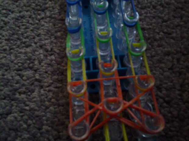 espero que todos disfruten mi primer instructables! Por favor dejar comentarios, preguntar y sugerir!Paso 1: fuentes de Usted necesita lo siguiente:· Telar del arco iris· Gancho· Bandas de gomaPaso 2: Colocar las gomas Empezar desde la parte inferior