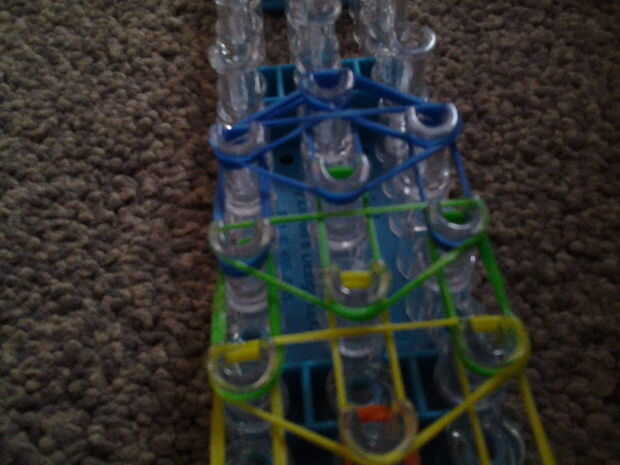 por favor como y seguir!!!!!! Necesita 39 gomas + una banda de caucho para los ojos + una banda de caucho extra para mantenerlo todo juntoPaso 1: materiales!!! : D Usted necesita:UN TELARUN GANCHO DERAINBOWBANDSPaso 2: colores!Puede utilizar cualquie