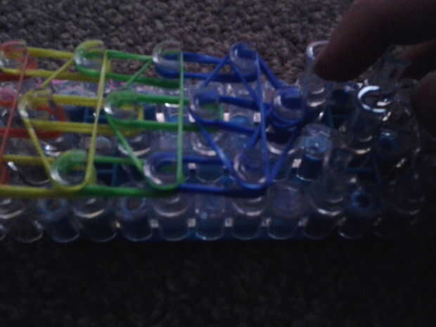 espero que todos disfruten mi primer instructables! Por favor dejar comentarios, preguntar y sugerir!Paso 1: fuentes de Usted necesita lo siguiente:· Telar del arco iris· Gancho· Bandas de gomaPaso 2: Colocar las gomas Empezar desde la parte inferior