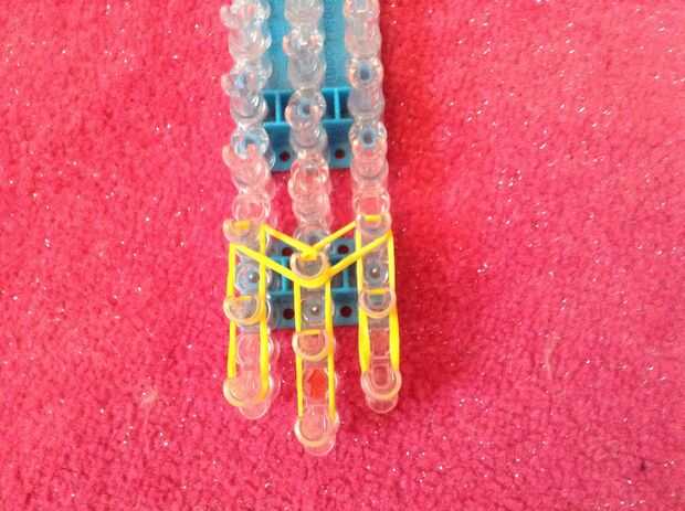 A continuación poner dos bandas más en el telar por lo que es como una flecha que apunta hacia