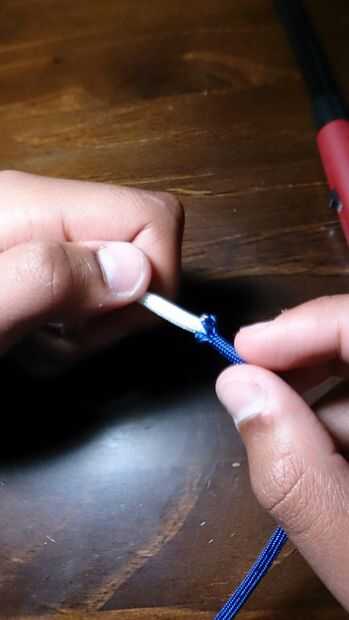 materiales:ParacordPegamento del gorilaTijerasEncendedorAsí que lo primero que hice fue cortar las cuerdas viejas y medir su longitud. Luego midió el paracord y cortar unas pulgadas más largo que la longitud de la cadena vieja. Después llamas los ext