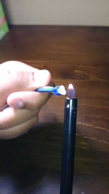 los 2 hilos de cable junto con la parte inferior de la llama de su encendedor y empujándolos juntos para crear un vínculo del fusible. Esto puede tomar varios intentos para conseguir derecha. (omitir este paso si tienes en color).