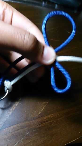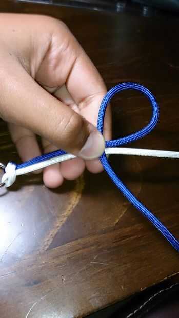 primero que desee medir el cable como se muestra en la imagen y pellizcar a unos 2 y medio pulgadas para Copiarme (Asegúrese de mantenerlo apretado y no dejes que vaya.) luego tomar tomar el color a la izquierda y hacer un bucle en ambos lados. por último tomar los colores sin los lazos y puso abajo el lazo es más cercano y hasta el otro lazo y sincronizarlo apretado. Nota: podría ser un poco fuera de su primera medición para medir y ajustar para asegurarse de que sigue siendo la misma longitud.