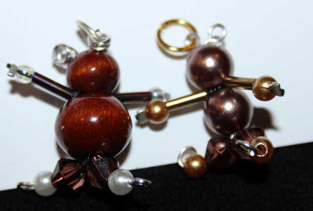 Tomar los pernos de cabeza de dos ojos y dos perlas de 8mm en se llevan a cabo juntos y la parte superior se ve como orejas.