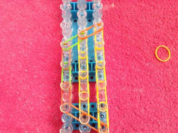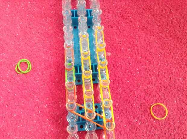 Ahora en el lado izquierdo siga el patrón diagonalmente para arriba de uno como en la foto y luego volver una diagonal con la naranja que es la carne.