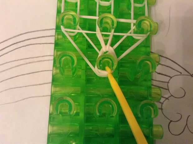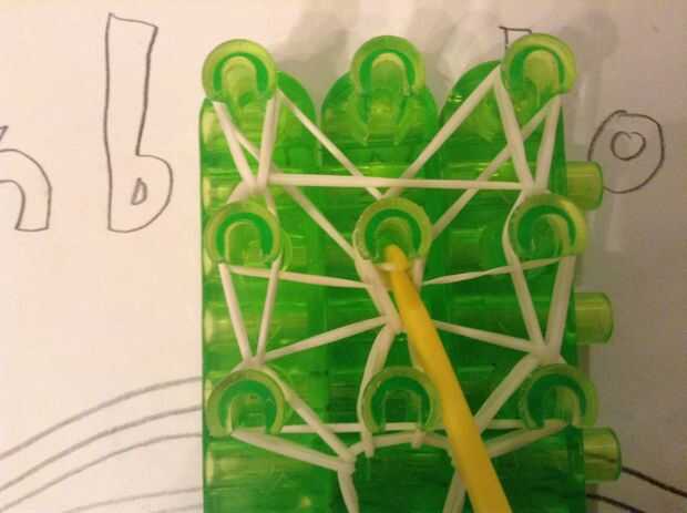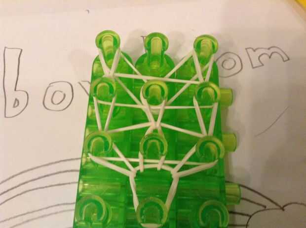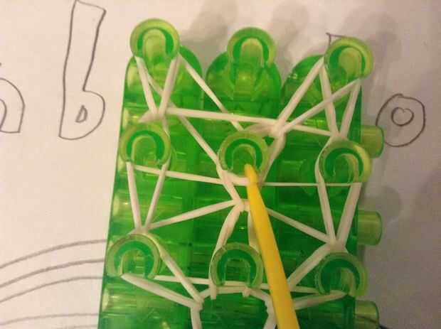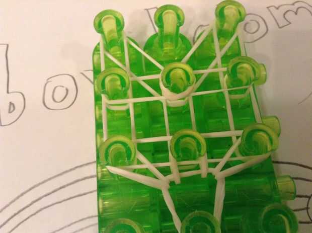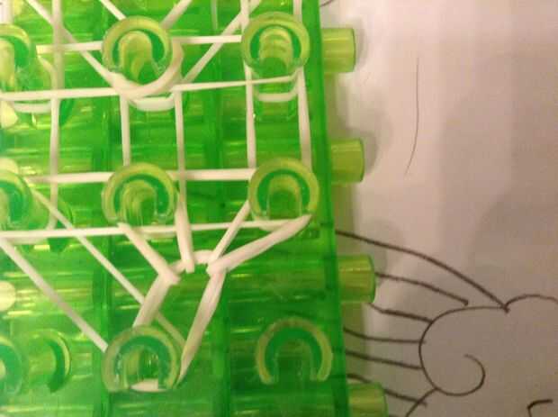 Pasar por debajo de la primera banda de la tapa y conectar sus primeras bandas. A continuación, conectar las bandas. No enganchar las bandas curvadas hacia abajo, pero pasar por debajo de la banda de la tapa y conectar desde allí.
