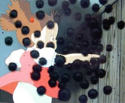 Sprites de hollín son pequeñas criaturas de tipo "dustbunny", que fueron creadas por Studio Ghibli. Puedes leer más sobre ellos aquí:http://en.wikipedia.org/wiki/Susuwatari también hay fotos de ellos arriba ^