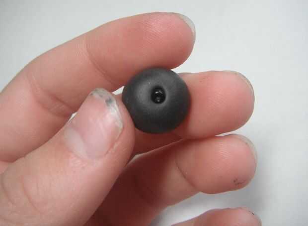 Empezar a presionar los granos en la bola de arcilla. Me gustaria hacer este uno por uno, para asegurarse de que no quedan grandes huecos, pero se puede experimentar. No te olvides de los granos del ojo!