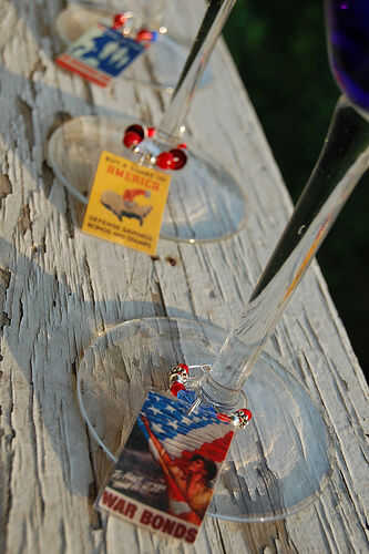 Mostrar tus encantos con orgullo en los vástagos de las gafas! Serán iniciadores de conversación instantánea. ¿Que no le gusta retros anuncios Americana? Si no quieres ir a la molestia de hacer vino vidrio charms, imprimir las imágenes en etiquetas, cortarlas y les tonto en rojo bofetada y azul tazas de Silo!