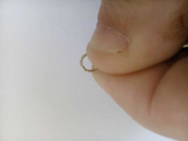 Una vez que han perforado de los agujeros, necesita sujetar anillas. Abrir el anillo del salto deslizando los dos lados separados, no tirando de los extremos alejados uno del otro. Una vez han roscado en la pieza de juego, cerrar las anillas bien otra vez.