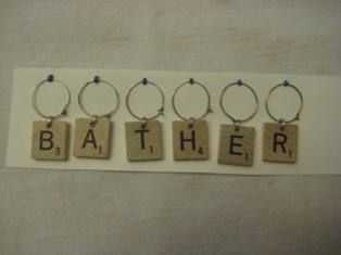 He hecho estos para regalar en cestas de regalo. Sólo encontrar un pedazo de cartulina o cartón y "coser" en cada encanto vino con hilo. Conseguir una canasta, agregar una botella o dos de vino, dos servilletas de tela colorida, un tapón bastante vino, los encantos y unas trufas y tienes el mejor regalo siempre!