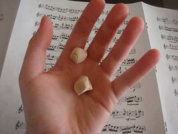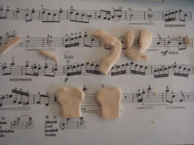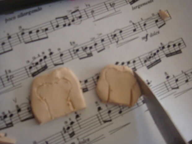 En primer lugar, sacar unas bolitas de arcilla tan. Entonces, aplanarlos a un grosor de unos 2 1/2 milímetros (aproximadamente 1/4 de centímetro).
