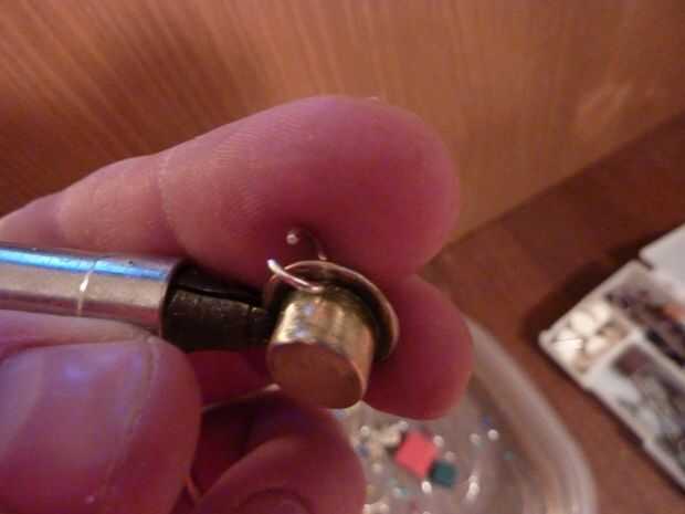 1. Taladro un agujero de 3/64" para acomodar el anillo del salto.
