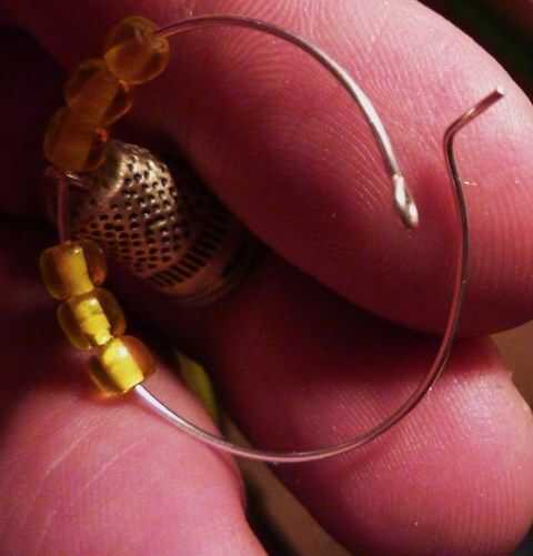 4. Tirar ajustado con pinzas.  Epoxy de 5 minutos aplicar dentro el dedal, el ojo de cementación.  Mantener la tensión mientras que el epoxi se endurece.  El tiempo de curación será más largo en el espacio confinado.