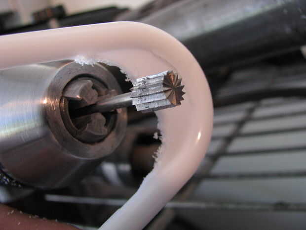 Si la suspensión tiene, simplemente muele hacia fuera con una herramienta giratoria. Use protección para los ojos.