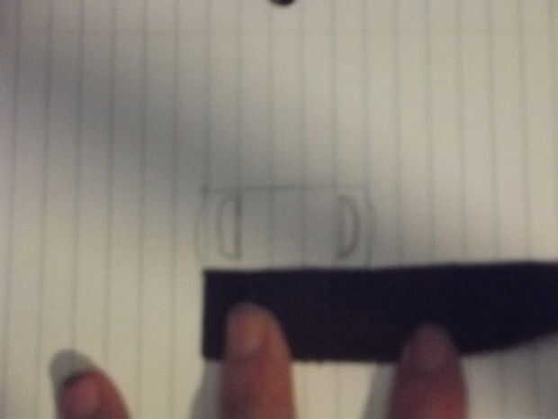 El proyecto de un patrón más o menos el tamaño de la hebilla. Se puede trazar sobre él. Me gustaría hacer más pequeño por unos milímetros. Debe ser lo suficientemente grande como para proporcionar al menos un 1/8 de pulgada en la parte superior e inferior de la correa del collar e idealmente debe ser ligeramente mayor que la hebilla entera para asegurar adecuadamente protege el cuello del perro. Con un lápiz u otra herramienta de marcaje/trazado anotar las dos ranuras donde el nylon irá a través de la piel en cada lado de la piel.