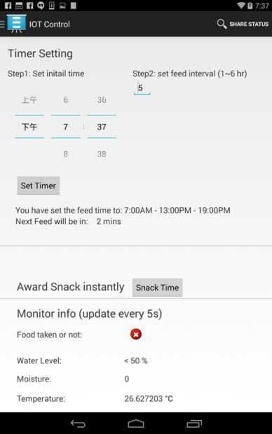 - Interactuar con su mascota en tiempo real con el streaming de vídeo y altavoz y suelte la alimentación al instante como recompensa