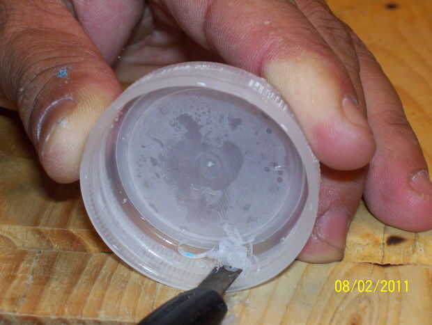 Tomar el primer tapón y gradualmente o con cuidado cortar los hilos de rosca de la tapa interior con el cuchillo pequeño. Esto no hará que el tapón de ajuste en la tapa del 2 º mejor pero permitirá que la tapa hace más de un contacto.