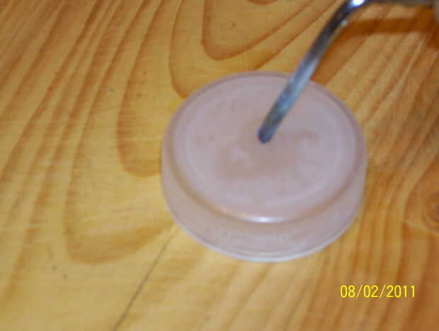 Una vez que el punzón es muy caliente, justo antes de se ilumina en rojo caliente entonces su suficientemente caliente como para derretir una pequeña en el centro de la tapa del primer