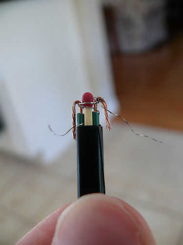 Después de la lana de acero envuelto alrededor de partido y conectada cada cable, doble los extremos del cable sobre los bucles en la lana de acero para deslizar el extremo de la ignición. Este es el paso final, y usted está listo para la ignición.