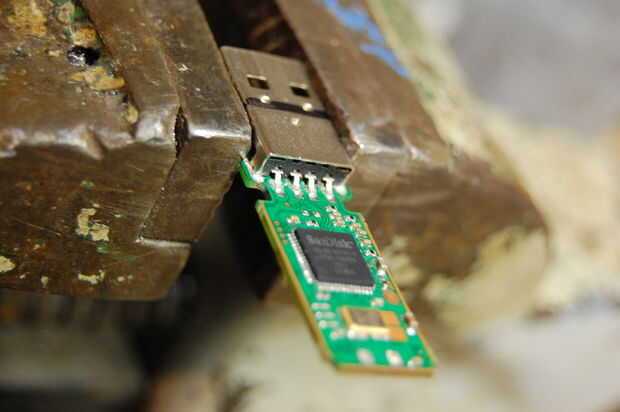 tengo una pequeña memoria USB que guardo en mi cartera, por si acaso. Obviamente no soporte la prueba del tiempo. Una mañana de sábado, en busca de algo nuevo que hacer, he recordaba alguien conseguir un USB dentro de un enchufe usb roto. Este es mi