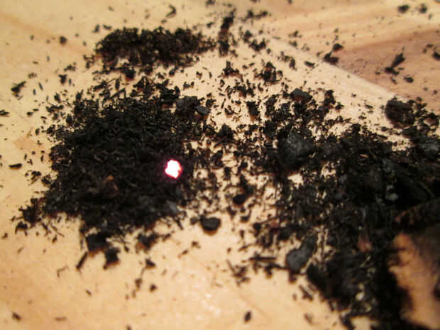 Cuarta vez fue la buena. Una bonita pieza de carbón aparecieron - el más lindo que he visto - y si he conseguido convertirlo en un incendio no la más mínima importancia.