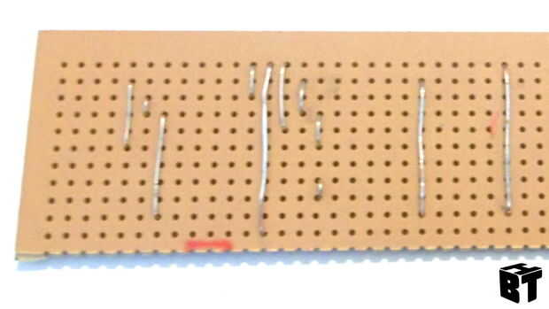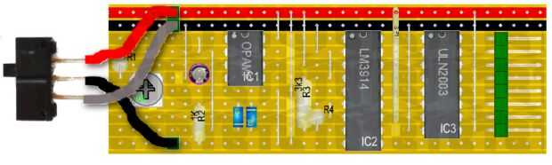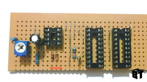 El Zener diodos y el condensador deben ir en la orientación correcta o el circuito no funcionará. El condensador está marcado con una marca blanca de la tira o - . Los diodos Zener tienen una marca de pintura negra. La IC tiene una muesca en un extremo y esta muesca debe estar en la parte superior de cada chip. La brecha entre cada pista en el lado de cobre de la placa de circuito es muy estrecha y es bastante fácil de puente accidentalmente a través. En las fotos he utilizado zócalos IC, por lo que puedo sacar las fichas para usarlos en otros proyectos. Esto es opcional pero para unos pocos centavos vale la pena el gasto ya que es fácil dañar un IC si usted intenta y desoldarlo.