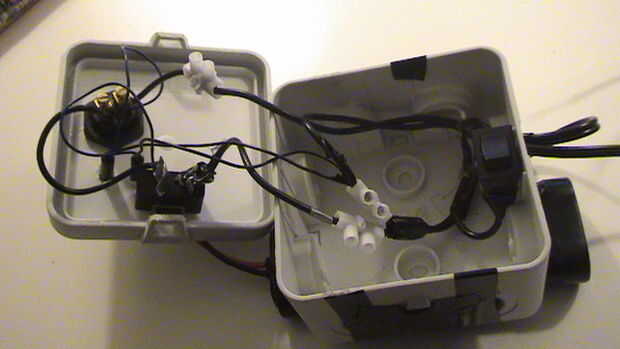 Ahora Conecte el extremo inferior del circuito uno de los extremos va al cable de 10 metros y el otro en la caja, luego a la batería, también puede incluir un interruptor principal.