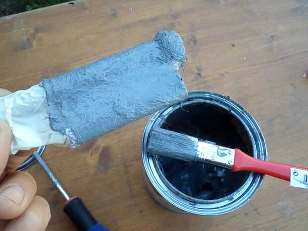 EL ingedrient: 'DIP étanche' ('inmersión hermético') - una pasta de material de fibra gomosa utilizado para hacer uniones en áreas húmedas hermético - en techos por ejemplo. Probablemente tendrás algo similar donde vives - estoy seguro de que incluso una mezcla de resina de pino y yakdung hará el trabajo.