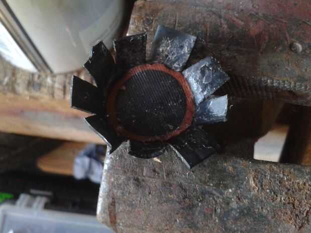 tome el bloque de combustible y el lugar en una longitud del interior del tubo sobre 6-8inchs largo, ponen unos 10mm de un extremo dentro del tubo! luego ajuste el extremo del tubo por lo que se puede doblar sobre el bloque y el pegamento cerró con el pegamento de reparación de pinchazos!
