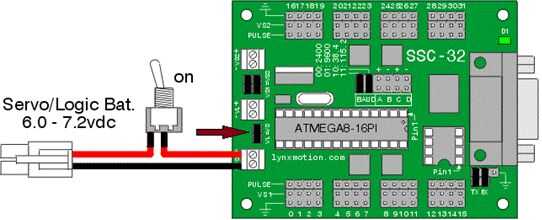 Si su proyecto tiene muchos servos y pretende funcionar por más tiempo, sugiero que utilizar alternativas de alimentación. Visita este enlace, Opciones de alimentación del SSC-32, para ver las diferentes opciones que puede utilizar antes de empezar.