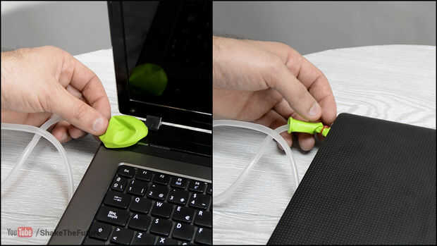 Cuando desea encender el portátil, sólo apriete la bomba.