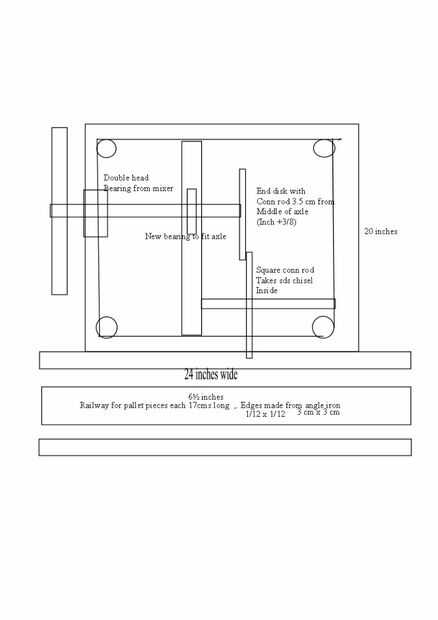 por lo que ahora en una posición para marcar un lugar para él en el marco. Necesita el viejo árbol para comprar un árbol más nuevo, el mio es 18"(45 cm). Soldar o perno de la carcasa de doble carrera, para que el borde de la rueda de la polea está en el borde del marco y hacer una vivienda para la compra carrera de bola y que soldar una pieza cruzada va a través de 24" parte de la estructura. El centro de la barra del eje es ahora la línea de centro para configurar la biela de empuje y tire el cincel... He encontrado la altura debe ser la misma o el cincel podría sentarse ligeramente por encima de la línea de centro, pero no por debajo como tiende entonces a enlazar. Otra consideración sería el sentido de giro del motor, por lo que cualquier y tuercas tienden a apretar cuando giran y no deshacer. Puede ahora determinar donde la bancada debe sentarse por deslizamiento de la correa en y bloqueando el motor, hice un tensor de la correa, pero que no es realmente necesario, solo Sujete el motor en su lugar y ver que funciona libremente sin deslizamiento, agregar las cuatro abrazaderas inferiores al mismo tiempo. También he apoyado el rodamiento de las cubiertas superior e inferior con tiras. Puede Agregar el volante al eje, necesita aprovechar para un perno M8 y también encontré que necesitaba "Loctite" para evitar que el perno de ser flojo.