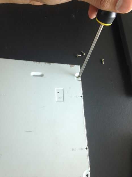 Para salvar el mecanismo de apertura de la puerta CDROM, desatornilla los 4 tornillos de la tapa y pop off.
