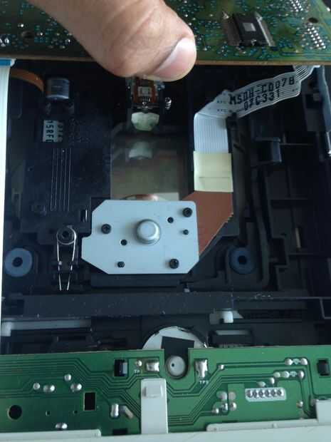 Dejar a un lado el PCB y voltee la unidad de CD para probar el mecanismo de apertura de la puerta.