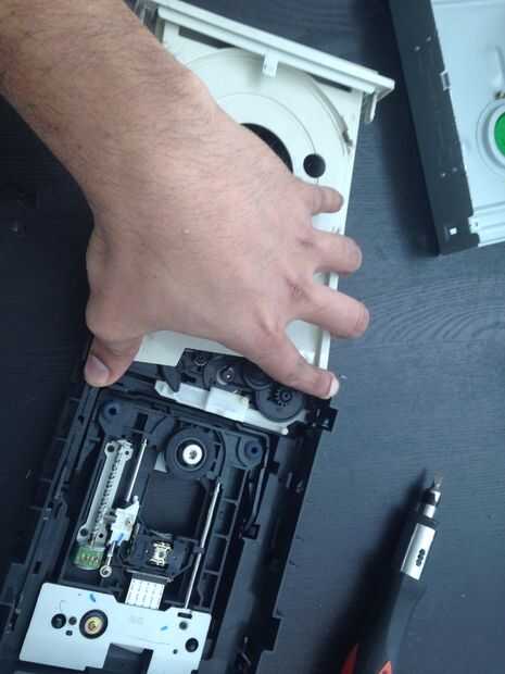 Ahora si su mecanismo funcional, retire la bandeja de CD-ROM mediante el desbloqueo de un par de bisagras en el lado