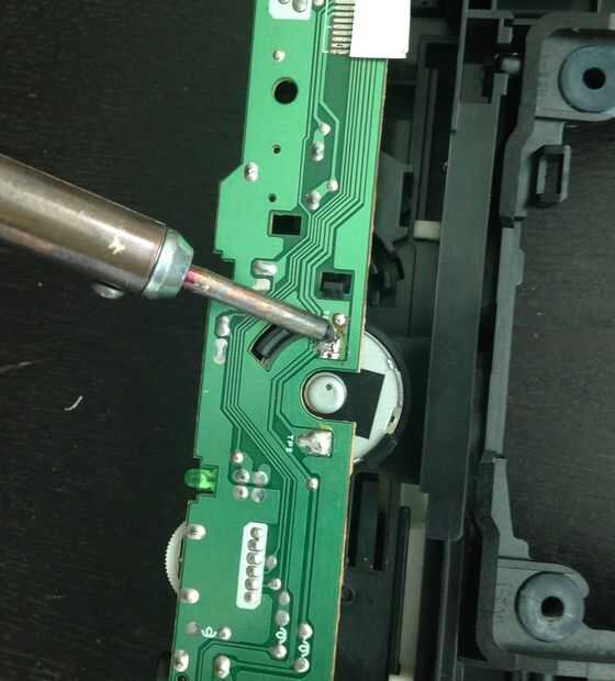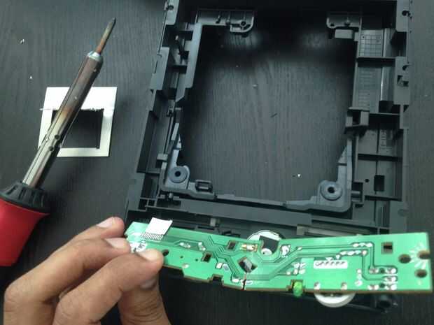 Ejecuto el soldador y desoldar el motor de la PCB tal como se muestra en la foto de arriba. En mi caso logré romper el PCB al intentar sacarlo.