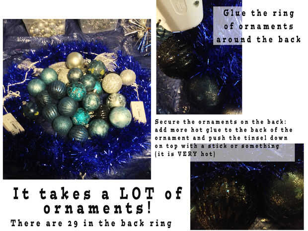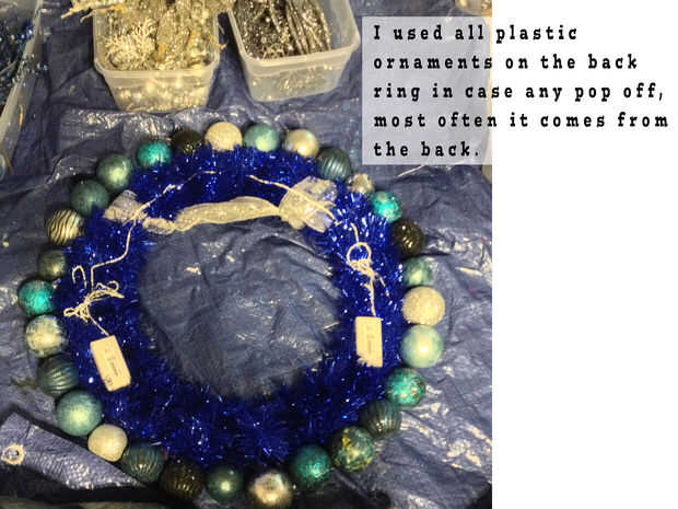 He hojeado la corona donde la espalda era cara arriba y empezó a pegar en los adornos de plástico, alternando distintos colores o tipos. Me gusta usar el plástico unos en la espalda porque son más difíciles de ver desde la parte delantera y también menos frágil.