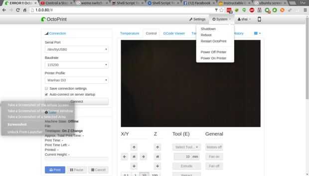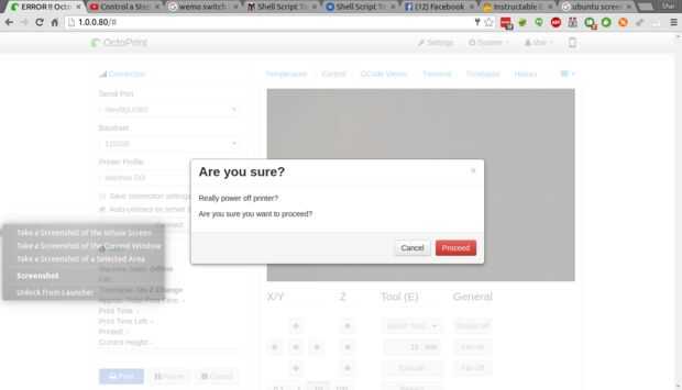 Esta es una guía simple que bien ayudarle a configurar un interruptor de visión WEMO, 50 $ en Amazon http://amzn.to/26qdS91, (o cualquier otro interruptor de WEMO) controlado por menú del sistema de OctoPrint apagar la impresora conectada.