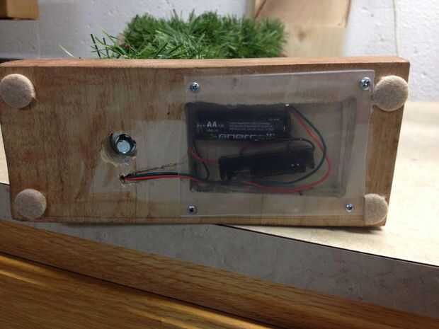 En la otra foto es la base completa. Puse una ventana de plástico transparente en el compartimento de las pilas para que sea fácil de cambiar las baterías, y algunos sintieron pies. Si usted está haciendo estos a la venta en el club de raqueta local, querrá esto para ver mejor. (No olvide poner en las pilas).