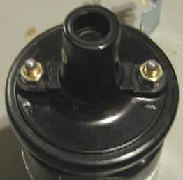 El tercer terminal es la terminal de salida de alto voltaje. Se encuentra en el centro de la bobina, rodeado por una cubierta de plástico. Dentro de la cubierta, el terminal parece una copa de metal con un diámetro interno de aproximadamente 5/16". Consulte el cuadro a continuación para ver los terminales reales. La terminal de alta tensión Centro generalmente está conectada mediante un cable especial al distribuidor cuando se utiliza en su uso normal.