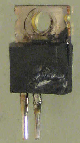 Saturen los riesgos aumentando drásticamente la potencia disipada en el interruptor de semiconductor si el el tiempo no es limitado. Un interruptor que es adecuado para sistemas de 12 voltios puede destruirse fácilmente cuando se saturen, si no se tiene cuidado. El tiempo en el interruptor tendrá un efecto significativo en la potencia que se disipa en el interruptor. Se convierte en aún más importante usar una adecuada calefacción hundimiento del interruptor cuando se saturen. La imagen de abajo muestra los restos de un IGBT que quema cuando saturen a una bobina. Mantener el encendido comprueba tiempo limitado para evitar que se queme el circuito controlador!