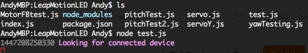 La pantalla del Terminal debe salir ahora "Buscando dispositivo conectado". Este proceso ahora Conecte su LeapMotion y Arduino y que se comunican a través de su computadora.