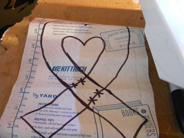 Transferir el diseño a un pedazo de papel del trazador de líneas de estante. Tenga en cuenta que es el lado pegajoso con el trazador de líneas de transferencia y que es el lado bueno de frente. Dibujar en el lateral del liner.