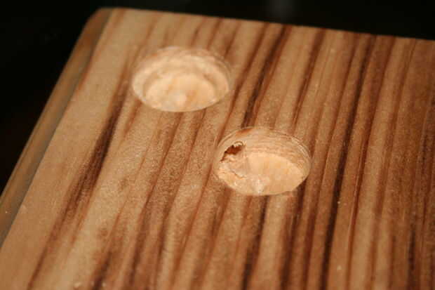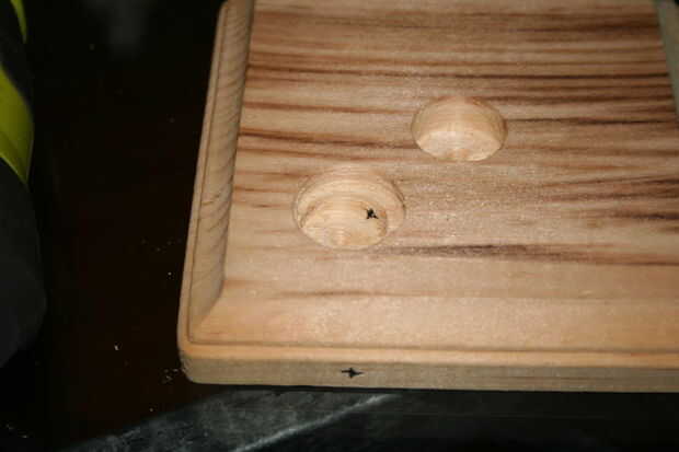 He marcado donde quería hacer a continuación. Necesitaba ir del interruptor hacia fuera para el cable de alimentación. La broca de tamaño dependerá de lo que el tamaño del cable es. Entonces tuve que perforar 2 ángulo de la bombilla al interruptor. Entonces volcó la placa y perforados de la parte inferior para conectar los 2 agujeros. Esto me dio espacio para ejecutar el cableado. Corrí el hilo a través del primer agujero.