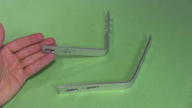 Cortar dos piezas de aproximadamente 10 pulgadas/26 cm de largo y ponerlas en una mordaza y un martillo en forma de 'V'. Cada pata de la 'V' es aproximadamente la misma longitud (de 5 pulgadas / 13cm). Tenga en cuenta que si usted es diferente entonces tendrás que llegar a sus propias dimensiones y posicionamiento que funcione para usted.
