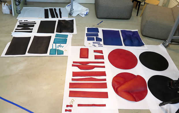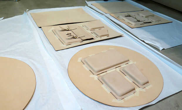 Cada pieza de cuero es cortado, biselado, perforado los agujeros, teñido, acabado con una capa de brillo y borde pulido (en el orden anterior). Todas las piezas fueron montadas previamente antes de teñir para asegurarse de que alineen los agujeros de costura. Fue un proceso muy laborioso pero fue crucial para el montaje exacto de los equipajes.