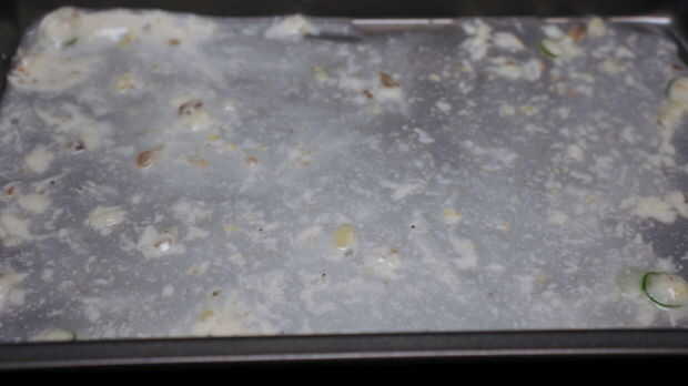 Difundir una pequeña capa de la salsa en el fondo de la cacerola; y agregar un poquito de agua como se muestra: