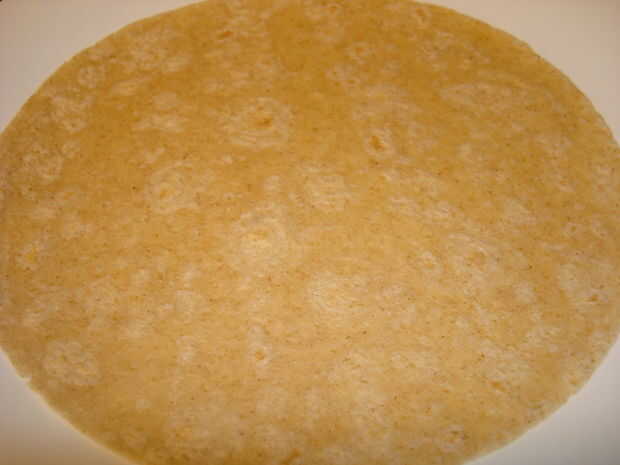 Cubrir un lado de la cáscara de la tortilla con la salsa.